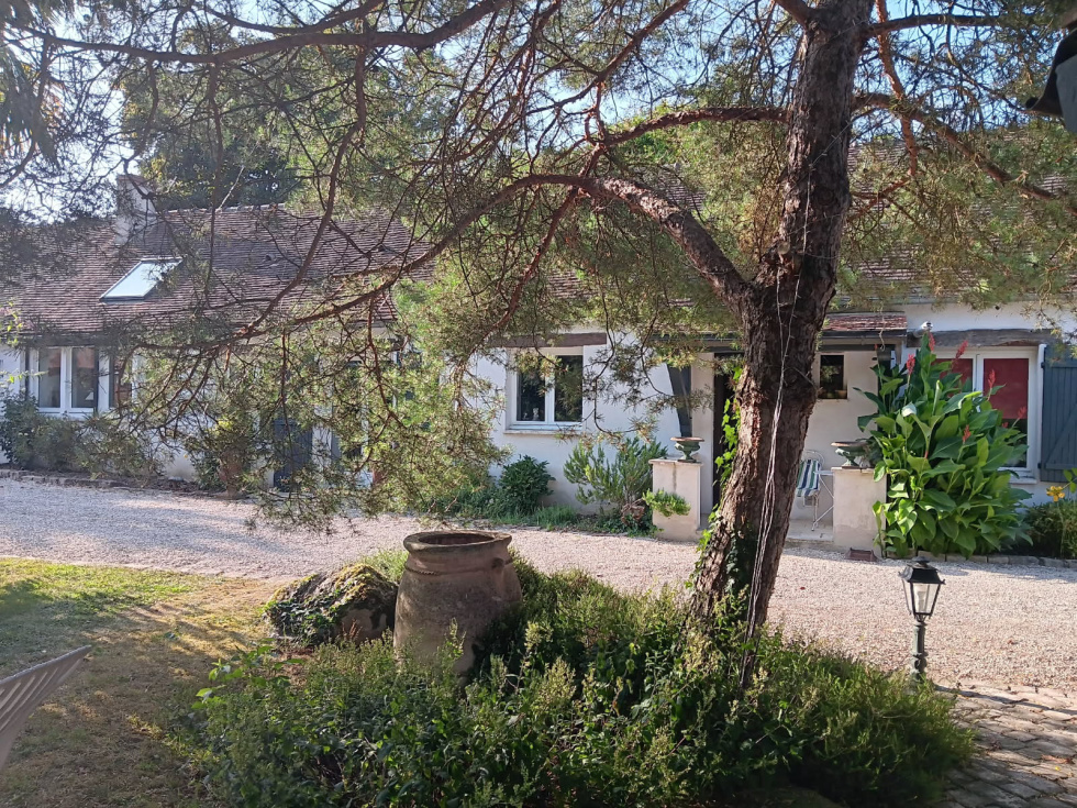 Houdan, à 8 km (CCPH), Propriété avec piscine Charmante longère de 200 m² offrant une cuisine aménagée et équipée, ouverte sur un grand espace de vie de plus de 50 m² avec cheminée, un WC séparé, une salle de bain, ainsi que deux chambres. À l'étage, on retrouve un bureau ouvert sur le séjour, deux chambres et une salle d'eau avec WC. Plusieurs dépendances comprenant un local de rangement, un atelier, un carport et un bureau. Le tout édifié sur un terrain arboré de 2800 m², calme et entièrement clos, avec une piscine semi-couverte et un pool house.