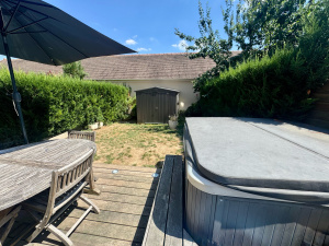 Houdan centre, maison ancienne avec commerces à pied et petite cour avec terrasse et jardinet fleuri, offrant un séjour avec cheminée, 3 chambres au premier étage ainsi qu'une chambre mansardée...