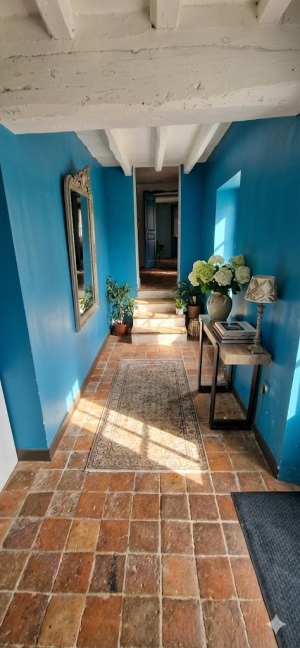Houdan centre, maison ancienne avec commerces à pied et petite cour avec terrasse et jardinet fleuri, offrant un séjour avec cheminée, 3 chambres au premier étage ainsi qu'une chambre mansardée...